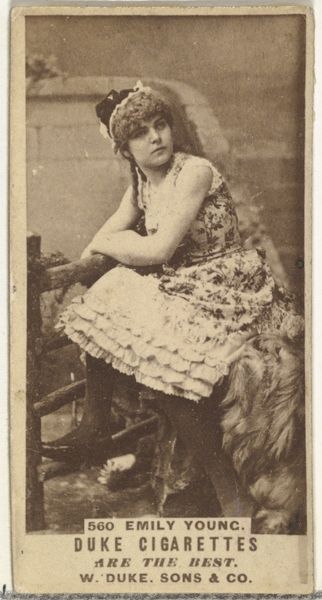 This photograph, produced by W. Duke, Sons & Co., features Georgie Dennon to promote Cross Cut Cigarettes. Note the curious gaze, her head adorned with what seems to be a simple cap. This intimate head covering, reminiscent of domesticity, invites us to consider its connection to purity and simplicity. Historically, such coverings bear a rich lineage. From medieval devotional images of the Virgin Mary to the Dutch masters' portrayals of women in domestic settings, this simple headdress carries echoes of virtue. Even in secular contexts, such as portraits of actresses, the cap retains a symbolic weight, suggesting a connection to the archetypal feminine. Perhaps unconsciously, the artist draws on our collective memory, imbuing Dennon with an aura that transcends her role as a mere promoter of cigarettes. This connection evokes an emotional response that resonates with deeply ingrained cultural associations. These symbols evolve, resurface, and take on new meanings, connecting us across centuries.