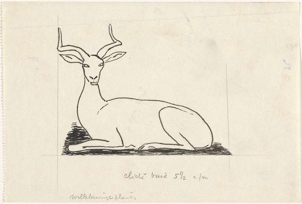 Editor: Here we have Denman Waldo Ross's 'Sketch of a Prehistoric Deer.' It's a simple line drawing, almost childlike. I am curious, what do you see in this piece, beyond the obvious subject matter? Curator: Well, first I see the paper itself, a commodity produced by labor. Ross chose this specific material. What statement does the simplicity and the raw material make about artistic value here? Editor: I suppose it makes art accessible, less about high-end materials and more about the idea. Thanks for the insight! Curator: Indeed. It points to the democratization of artmaking, using readily available, inexpensive materials.