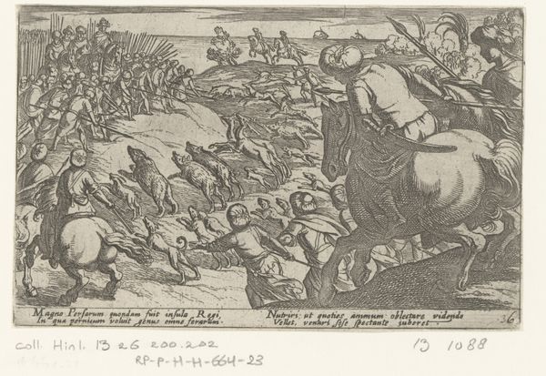 Julius Goltzius created this print, "Destruction of the Egyptian Army in the Red Sea," sometime in the late 16th century. As a Northern European artist, Goltzius lived in a society deeply influenced by religious reformation and a renewed interest in biblical narratives, like that of Exodus. The print depicts the moment when the Red Sea, having parted to allow Moses and the Israelites to escape, crashes down upon the pursuing Egyptian army. The chaotic scene, filled with drowning soldiers and overturned chariots, can be seen as a commentary on power, divine intervention, and the triumph of the oppressed. As the Israelites pass to safety, the image speaks to themes of liberation and divine justice, which had a particular resonance in the context of the religious and political upheavals of Goltzius’s time. Consider how the artist uses the dramatic depiction of the event to convey not just a historical moment, but also a powerful message about faith, resistance, and the consequences of tyranny. The image, in its emotionally charged depiction, asks us to reflect on the enduring human struggle for freedom and justice.
