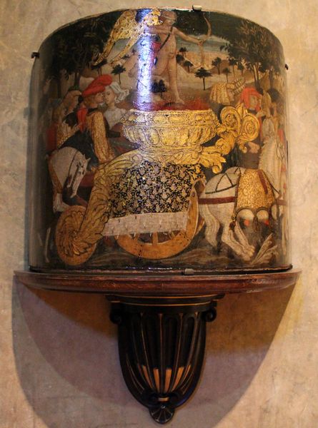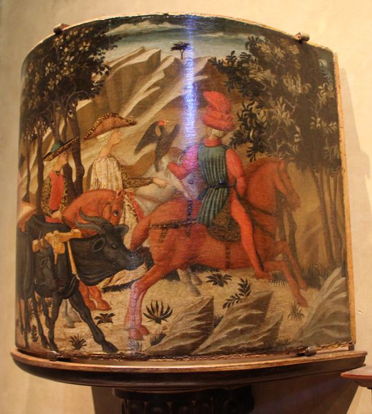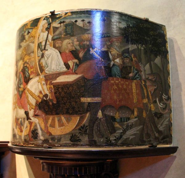 Lo Scheggia painted this “Triumph of Fame” without a known date, capturing a procession dominated by figures on horseback. The horse, a potent symbol across cultures, transcends mere transport. It embodies nobility, power, and virility. Here, the horses are not just ridden; they are adorned, bedecked in finery, elevating their riders and underscoring their esteemed status. This echoes ancient equestrian statues of emperors and Renaissance portraits of condottieri, each leveraging the horse to amplify their authority. Consider how this motif evolves: from the proud steeds of classical heroes to the warhorses of medieval knights. The procession itself suggests a narrative, a journey, perhaps alluding to the cyclical nature of fame—its rise, its zenith, and its inevitable decline. This resonates deeply within the collective psyche, touching on our universal aspirations for recognition. Observe how the artist orchestrates this procession, guiding our gaze through a deliberate choreography of power and prestige. It's a visual echo, a persistent whisper from the past, reminding us of the enduring human quest for glory.