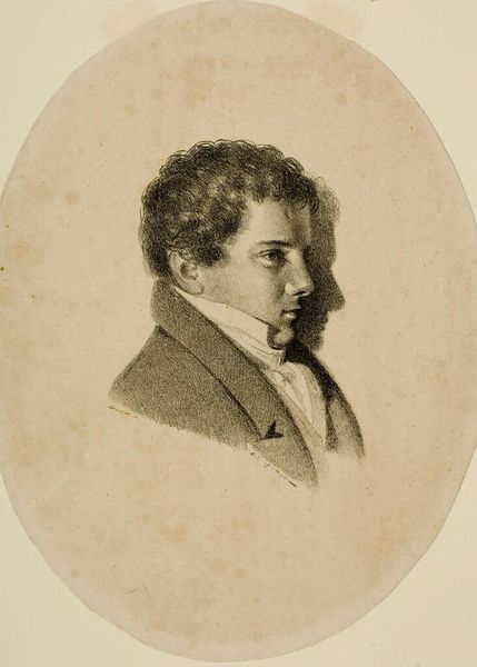 Editor: Here we have Philipp Otto Runge's "Portrait of a Young Man," created sometime between 1792 and 1810 using oil paint on canvas. There's a formality to it, almost severe, but also a sense of yearning in the subject’s eyes. What do you see in this piece? Curator: The first thing I notice is the distinct contrast Runge creates. The sharp lines of the subject’s coat against the softer, almost blurry background suggests a world in transition. The individual, defined and self-aware, emerges from an indistinct past. Do you get that sense of duality? Editor: Yes, I do. It's like the young man is standing on the cusp of something. Curator: Precisely. Look at his gaze—it isn't directly at the viewer but slightly averted. This creates an introspective mood, fitting for the Romantic period. The symbol of the averted gaze pulls from earlier Northern Romantic traditions that focus on solitary reflection and an embrace of a certain kind of melancholic moodiness. This resonates through our memory and impacts our reading of this artwork even now. Editor: So, you're saying his gaze speaks to more than just personal feelings, it speaks to a broader cultural shift? Curator: Exactly. Runge captures the individual coming into focus against the fading traditions represented in the background landscape. It becomes about the negotiation between personal identity and cultural memory. It makes one wonder: how much of the past do we carry into the future, consciously or not? Editor: I see it now. I had focused on the face itself, but thinking of the portrait as part of a cultural narrative, with its symbolic weight… that really deepens my understanding. Thanks! Curator: My pleasure. These symbolic elements shape how we experience the painting, even if we’re not fully aware of their cultural baggage. A great reminder that every image whispers of our collective past.
