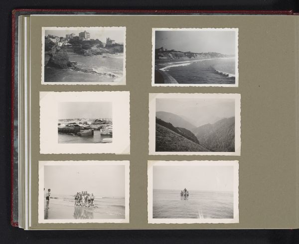 Editor: Here we have "Natuurzopnamen," or "Nature Recordings," a series of gelatin-silver print photographs mounted in an album, dating from 1948-49. They're stark and intimate. I’m struck by how they document seemingly untouched landscapes. What story do these collected images tell you? Curator: To me, this album feels like a quiet conversation with the earth, whispered in monochrome. Look how each image, while depicting a different scene, shares a similar emotional frequency. You get a sense of post-impressionist longing combined with realist simplicity, the artist isn’t just recording what they see, they are internalizing and representing how it feels. Does that resonate with you at all? Editor: Yes, I definitely see that now. It feels less like documentation and more like…almost like poetry? The varying textures, from smooth water to rocky crags, adds to that feeling too. Curator: Exactly! Think about the painstaking process of creating these gelatin-silver prints. It is like developing a memory itself, layer upon layer. The artist captures the spirit of a landscape, inviting us to pause and appreciate the Earth's varied voices. What might the artist be trying to convey? Editor: Maybe a universal connection to nature, transcending borders or specific locales? I find it interesting that they are combined as opposed to solo works, maybe the point is to see them all as part of a story. Curator: Precisely. Consider also the timeframe: just after the war. Maybe it's about rediscovering beauty and serenity after upheaval. Something new growing from the ashen scars, in a way. Editor: It's interesting how that context completely shifts the meaning. It definitely feels like more than pretty nature scenes now. Curator: Absolutely, that new reading opens even more insights, it is good to see how a conversation with the art may make our own horizon of perspectives larger, like an eye over the land!