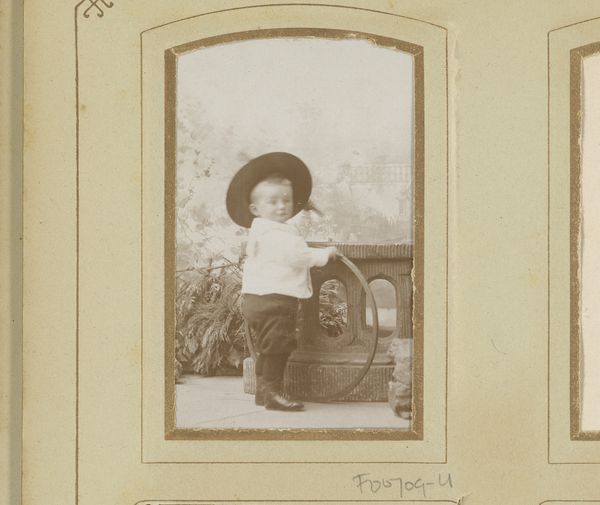 This photograph, taken in Sumatra, shows a young Georges Bergsma on a tricycle. The grayscale image presents a study in contrasts and textures, inviting us to consider its formal structure. The composition is anchored by the child at its center, his bright sailor suit a focal point against the dense foliage. The blurred background creates a shallow depth of field, flattening the space and emphasizing the interplay between the foreground and the obscured forms behind. The angle offers a direct view, engaging the viewer. The lack of sharp definition, typical of early photography, contributes to the image's dreamlike quality, inviting contemplation. Note how the framing of the shot, seemingly spontaneous, aligns with the structuralist idea that even unintentional forms possess inherent meaning. The image functions as a sign, encoding ideas about childhood, colonialism, and the act of representation itself.