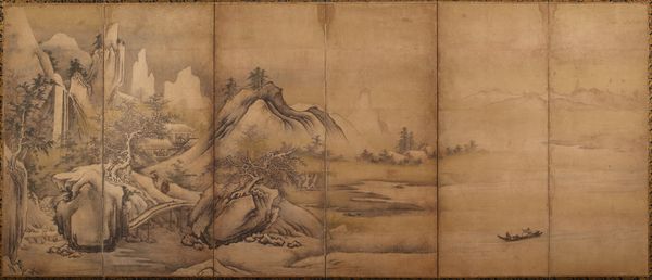Birds of prey became a favorite subject of members of Japan’s warrior class beginning in the 1400s and 1500s. When applied to large-scale paintings like folding screens, such images, which express notions such as military prowess, power, and valor, made for a particularly impressive backdrop for warriors’ receptions rooms. Soga Nichokuan, like his father, Soga Chokuan (Nichokuan literally means “the second Chokuan”), specialized in images of birds, especially hawks and other birds of prey, whose textured feathers they described using a meticulous layering of various tones of ink wash. The hawks of Nichokuan and his father owe a great deal to older Chinese and Japanese paintings . But Nichokuan, particularly in late works like this one, placed these more conservative birds into surreal landscapes of knobby, wildly twisting trees, jagged boulders, and sometimes bizarre water features.