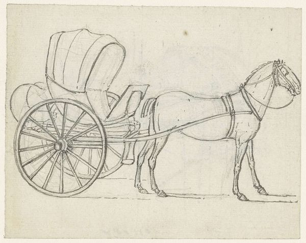 Editor: Here we have Jozef Israëls' "Sitting figure on a horse cart," dating from 1834 to 1911, created using pencil. The sketch has a feeling of weariness or perhaps resigned acceptance. How do you interpret this work, especially considering its historical context? Curator: That's an astute initial reaction. What strikes me is how this seemingly simple genre scene invites a broader interrogation of labor, class, and representation. Consider the figure's posture—is it merely exhaustion, or could it also be a sign of the socio-economic burdens they carry? This piece reminds us to reflect on whose stories are traditionally centered in art and whose are marginalized. Editor: So, it’s less about the literal depiction and more about the unseen narratives surrounding the figure? Curator: Precisely. Think about the rise of realism during that period. While it aimed to depict everyday life, whose everyday was deemed worthy of representation? The laboring classes, often romanticized or simplified, rarely had agency in shaping their own narratives. How might this sketch, with its raw, almost hurried lines, be read as a subtle commentary on that dynamic? Editor: That makes me see the "rawness" as more deliberate, highlighting the unvarnished reality of their existence. Is that what you mean? Curator: Yes. It could also invite discussions about access and power. Who controlled the means of artistic production and representation? What voices were silenced or excluded? It prompts us to see the work as more than just a genre scene; it becomes a lens through which to examine social inequities of that era, inequities that often persist today. Editor: I never would have thought of that. I’m starting to see how much art reflects and challenges the power structures of its time. Curator: Exactly! And how by critically engaging with art history, we can illuminate those structures and hopefully move toward a more equitable future. Editor: That's really given me a new appreciation for how a seemingly simple drawing can be a powerful statement.