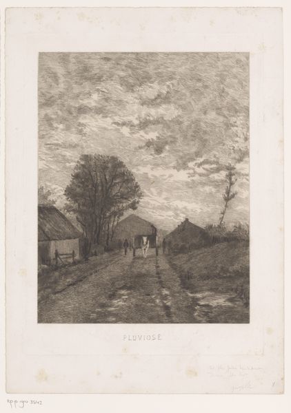 Here we see H. Gerner Lund's "Landsby," a detailed drawing showcasing a village scene. The drawing's composition divides the space, where dark and light shading creates a balance that draws the eye along the road and into the distance. The textures of the thatched roofs and rough stonework add a tactile quality that invite closer viewing. Lund's drawing technique focuses on line and form to define space and depth. The repetitive lines and shading not only represent objects but also convey a sense of the rural environment. Consider the structural implications of representing a village not just as a place, but as a collection of lines and shapes on a page. Lund prompts a conversation about representation itself. This work stands as more than a picturesque scene. It encourages us to look closely at how an artist uses structure, composition, and form to question our perceptions and prompt ongoing interpretations.