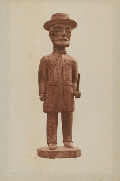 Bernard Westmacott created this whirligig, a carved wooden figure, sometime before his death in 1995. The choice of wood is crucial here; it's not a precious material but something vernacular, easily worked with simple tools. The process of carving and shaping the wood defines the object’s appearance, giving it a tactile, slightly rough quality. You can almost feel the artist’s hand at work, paring back the material to reveal the figure within. This direct, hands-on approach has cultural significance. It reflects a folk tradition, where skill and ingenuity are valued over high-art refinement. The labor-intensive process involved in carving, chiseling, and assembling such a piece highlights the commitment of the maker. This tradition stands apart from mainstream art history, reminding us of the value in everyday creativity. By considering its materials, making, and context, we can move beyond conventional distinctions between fine art and craft.