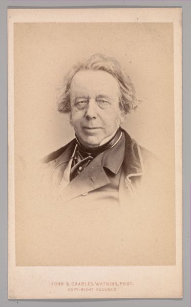 This is Willem Gerhardus Kuijer's "Portret van een man met baard in colbert met strik," currently held at the Rijksmuseum. The sepia tones and the oval composition create an intimate, almost classical feel, despite the modernity of the sitter's attire. The textures, from the wisps of hair to the soft fabric of the coat, invite a close look at the material qualities of the photograph. Consider how the formal constraints of portraiture are both honored and subtly disrupted here. The man's direct gaze engages us, while the soft focus and muted palette distance him. The sitter's careful arrangement in the frame creates a dialogue between revelation and concealment. It is as if Kuijer invites us to decode not just the man's likeness but also the very act of representation. Ultimately, the photograph functions as a complex interplay of surface and depth, where the material and its representation are inseparable from cultural and philosophical reflections on image-making.