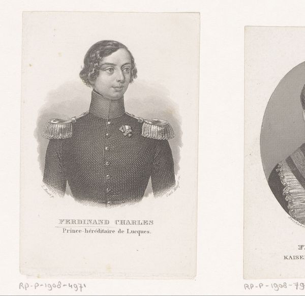 Curator: Welcome. Here we have a portrait of Frans V of Modena, Archduke of Austria-Este, crafted by Carl Mayer sometime between 1819 and 1868. It is currently held here at the Rijksmuseum. Editor: It’s quite striking! I’m immediately drawn to the intricate detail achieved with what seems to be primarily pencil work. The way the light catches the subject’s face…it’s remarkably lifelike. Curator: The artwork uses techniques typical of the neoclassical movement, evident in the precision of line and the formal representation of power through portraiture. What's fascinating is understanding how images like these served the aristocracy by reinforcing ideas of legitimacy and lineage during periods of significant upheaval. Editor: Absolutely. You see, looking at it from a materialist lens, one has to consider the economic factors influencing such production. How readily available were quality drawing materials? Who had access to the artist's skills? And consider the production process itself – engraving requires significant skill and investment in tools. Curator: That’s very true. Consider the context—the role of patronage was also essential here. Frans V, as a Duke and Archduke, would have commissioned or authorized portraits to enhance his public image and perhaps consolidate his political authority. Editor: It's fascinating to think about the paper itself. Is it a heavily treated paper? You can see that the aging of the paper supports this. That creamy tone adds depth to the monochromatic portrait and the textural quality elevates it beyond mere representation, and transforms into a compelling object of display. Curator: Definitely. It makes you ponder on the distribution networks—how engravings like this allowed for the dissemination of images across geographical boundaries and thus, influenced public perception of figures like Frans V. Editor: So, when considering the social implications alongside material properties we get a holistic picture that merges artistic value with the historical forces that dictated its production and consumption. I appreciate how such a simple medium, like pencil, in skilled hands and under certain social circumstances can contribute so effectively to create representations of power. Curator: Indeed. It offers a lens through which we see the intersections of art, power, and society. Editor: Exactly! The act of drawing, printing, and distribution all deeply enmeshed within that fabric.