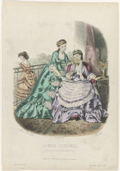 This fashion plate, circa 1869, presents two women adorned in the height of Parisian style. But it's not merely about fashion; it's a deeper cultural language. Consider the gown on the right, embellished with a cascade of ivy. Ivy, historically, has been associated with fidelity, eternal life, and strong emotional attachment. We see echoes of this symbolism in ancient Greece and Rome, where ivy crowned poets and symbolized Dionysus, the god of revelry and ecstasy. Yet, observe how the meaning has subtly shifted. Here, it adorns a woman’s dress, perhaps suggesting an idealized vision of feminine virtue intertwined with nature's vitality. Such motifs are never static. They are constantly being renegotiated by the collective memory and the subconscious desires of a culture. This image is a testament to the enduring power of symbols to evoke complex emotions and connect us to the past, present, and future.
