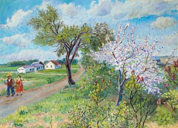 Claude Monet made this oil painting, "Poirier En Fleurs", which translates to "Pear Tree in Bloom", sometime during his long career. It captures the beauty of a flowering tree against a bright sky, likely within his own property. Monet was a key figure in the Impressionist movement in France, a group of artists who challenged the established art institutions of their time. They rejected the academic style of painting, favouring instead the spontaneous and subjective expression of light and colour. Monet and his peers often depicted scenes from everyday life, moving away from historical or mythological subjects. This focus on the present and the personal was a reflection of broader social changes occurring in France during the late 19th century. To understand Monet's work fully, we need to consider the social and institutional context in which it was created. The rise of the art market, the development of new painting techniques, and the changing role of the artist in society all played a part in shaping his artistic vision. By exploring these factors, we can gain a deeper appreciation of the historical significance of Impressionism.
