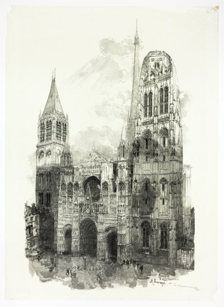 Joseph Pennell made this etching, The West Front, Amiens, using metal and acid, sometime between the late 19th and early 20th centuries. The printmaking process is crucial here. Pennell would have painstakingly drawn the image onto a metal plate with a waxy substance, then submerged the plate in acid. The acid bites into the metal where exposed, creating recessed lines that hold ink. This is then pressed onto paper, transferring the image. Look closely, and you can see the delicate web of lines that give the cathedral its form. The etching technique allowed Pennell to capture the cathedral's intricate details and grand scale, translating the weight and texture of the stone into a visual language of light and shadow. But more than that, the printmaking process democratized the image. Unlike a unique painting, an etching can be reproduced, making the cathedral accessible to a wider audience. Pennell was not just depicting architecture; he was participating in a modern system of visual communication, a system that, like the cathedral itself, involved considerable labor to produce. By focusing on the material processes involved in the making of an artwork, we gain insight into how it acquired social and cultural significance.