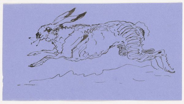 Editor: Here we have Johannes Tavenraat’s “Haas,” created sometime between 1840 and 1880. It's an ink drawing on paper of a running hare. I’m immediately struck by its dynamism – the hare is captured mid-leap, full of energy. What can you tell me about it? Curator: This drawing offers us a fascinating glimpse into 19th-century Dutch art and its relationship to both the natural world and the socio-political landscape. The Rijksmuseum acquiring such a work reflects changing perceptions of genre painting during this period. Why do you think Tavenraat chose such a mundane subject matter? Editor: Perhaps there was an increasing interest in Realism, capturing everyday life as it is? Curator: Precisely! Realism gained momentum as a response to the more idealized and romanticized styles that preceded it. But let’s consider the cultural context: genre scenes, especially those depicting animals, were becoming increasingly popular, signifying a burgeoning middle class with leisure time and interests outside purely religious or historical narratives. Consider, too, the rise of natural history as a field. What effect did these burgeoning social dynamics have on the perception of animal subjects within artistic production? Editor: So, instead of grand historical paintings, art began reflecting everyday life, aligning with a changing society? Did the public acceptance change because of this? Curator: Exactly. The rising middle class was the art market of this period. Tavenraat and other artists like him were directly influenced by their values and perspectives. I believe it's very probable they wanted representations of the world that were familiar and relatable, ones that echoed their everyday experiences and concerns. Editor: This is truly enriching. Now I understand why this piece, seemingly simple, offers a valuable insight into the culture of the 19th century. Curator: Indeed, this piece challenges the perception of art history, prompting one to study and question seemingly insignificant artifacts in an all-encompassing sense.
