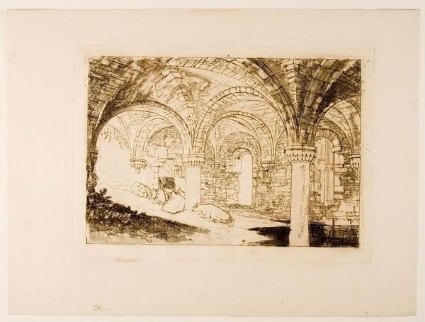 Editor: So, this is Turner's "East Gate, Winchelsea," housed at Harvard Art Museums. It's a delicate etching. What strikes me is the contrast between the detailed foreground and the faded background. It feels… nostalgic, almost dreamlike. How do you interpret this work? Curator: Oh, absolutely! Turner, even in these early etchings, is already playing with memory and the sublime. See how the gate, though ruined, still frames the landscape? It’s like glimpsing the past through a shattered lens. A past filtered through emotion, not just accuracy. It makes me wonder, what did Winchelsea mean to him? Editor: That’s beautiful. I didn’t think of it that way. Thanks!