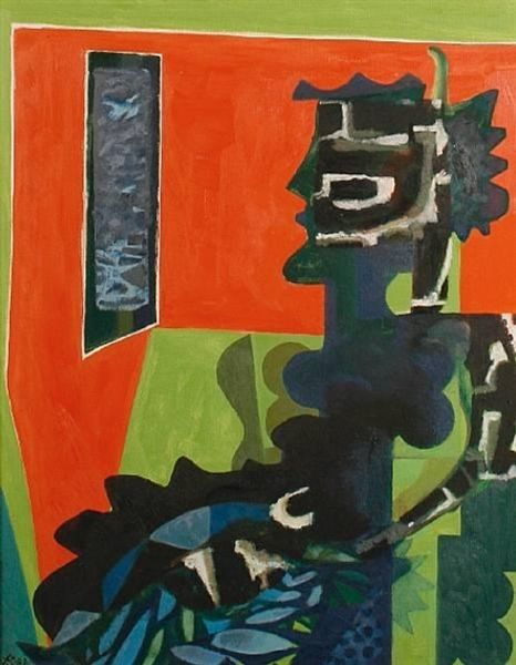 Editor: So, this is Conroy Maddox's Untitled piece from 1963, a mixed-media collage painting. It's quite striking, almost chaotic in its arrangement of shapes and colors. It reminds me of a dreamscape... fractured and a little unsettling. What do you see in this piece? Curator: An intriguing array of juxtaposed images indeed! The human figures caught in mid-motion, the geometric blocks of color…Maddox seems to be exploring the subconscious. The window motif, the house: these are potent symbols, aren't they? Editor: Definitely! The house seems so out of place, almost like a child's drawing. What do you make of that contrast? Curator: Consider the Surrealist fascination with the Freudian concept of the domestic space, the house is the Ego. The chaotic elements surrounding it—the abstract shapes and ambiguous figures— could represent the primal Id, striving to assert itself. There’s an inherent tension here, don't you think? What feeling do you get from the red in the composition? Editor: It is very eye-catching... Almost jarring against the softer tones, perhaps implying urgency or danger. It almost takes on the presence of blood. Curator: Perhaps. And does the juxtaposition with the rainbow strike you? Editor: It does! Such a strong symbol of peace and promise…It’s a total opposition to what seems aggressive. Curator: Maddox excelled at presenting such incongruous objects. What results is a tension and invitation for you to meditate on their relationship in the visual field. Ultimately it asks, what of our experiences do we reject versus celebrate? Editor: Wow, I hadn’t considered it that deeply. Seeing all of these contrasts has definitely expanded my understanding. Thank you for pointing those out! Curator: And thank you for allowing us to consider it further. I wonder, now, what this piece may be revealing from my own unconscious...