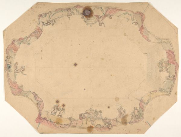 Jules-Edmond-Charles Lachaise created this ceiling design with watercolor, graphite, and pen and ink on paper. This drawing gives us a glimpse into the world of interior design and the decorative arts in France, a world that often reflected the values and aspirations of the wealthy elite. The design incorporates many classical motifs, such as floral ornaments, scrolls, and geometric patterns that evoke the grandeur of earlier eras. Made in France, these decorative features reflect the country’s deep-rooted artistic traditions and the cultural significance of interior aesthetics. Lachaise's design embodies a blend of classical inspiration and French artistic sensibility. To truly understand the cultural context of this design, historians might explore pattern books and architectural treatises. By examining these resources, we can appreciate how artists engage with tradition. Ultimately, Lachaise’s design invites us to consider the ways in which artistic practices shape and reflect broader social and cultural values.