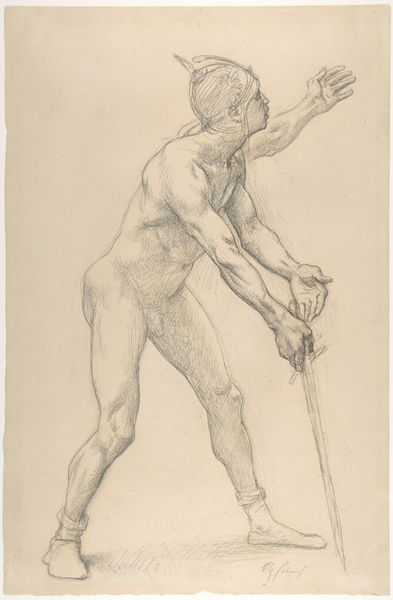Here is a pen and brown ink drawing titled "A Heroic Male Nude" by Bertel Thorvaldsen, made sometime between the late 18th and mid-19th century. Thorvaldsen, a Danish sculptor working during the Neoclassical period, renders a male figure, nude except for sandals. The man stands tall with his arms crossed, head tilted upwards. What does it mean to depict the male nude as heroic? The idealization of the male form has deep roots in Western art, often used to convey power, virtue, and dominance. But who gets to be a hero, and whose bodies are celebrated? During Thorvaldsen's time, ideas about race and class were becoming increasingly codified. Consider how the notion of heroism might have been used to reinforce certain social hierarchies. This drawing prompts us to think about how bodies are represented, and what those representations tell us about the values of a particular time and place. How do you feel when you look at this image?