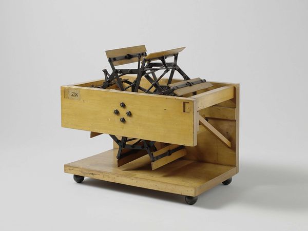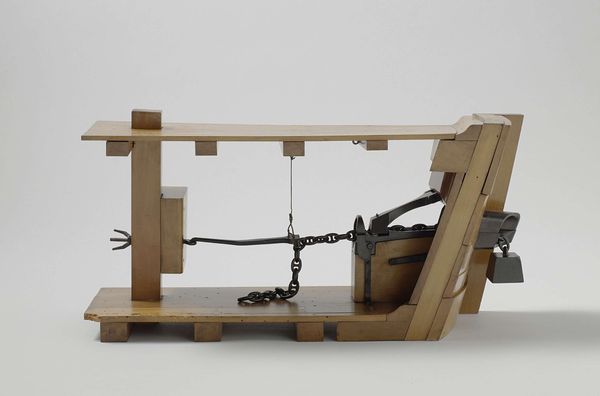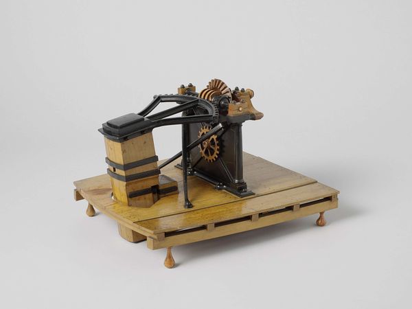 Editor: Here we have an object titled "Model of a Gunlock (Percussion)", dating back to 1835, created by Rijkswerf Vlissingen, employing materials like wood and metal. It almost looks like an abstract sculpture to me. What do you make of it? Curator: Well, it immediately sparks questions about its function within the broader military-industrial complex of the 19th century. This isn’t just a pretty object. It’s a tool, or rather a representation of a tool, that played a part in colonial expansion and societal control. Editor: So, you're thinking about the power dynamics at play? Curator: Exactly! And Rijkswerf Vlissingen itself is a key element. As a state shipyard, they were central to Dutch naval power. This model was likely used for training, or perhaps for demonstration to elites—consider the politics of armament production and its visual representation. It's not neutral; it carries the weight of imperial ambition. What do you think about how realism figures here? Editor: I guess it's a paradox: this highly detailed object ultimately stands in for the real thing, right? It makes me wonder who had access to the ‘real’ thing and who only saw the model. Curator: Precisely! Access defines power, and this model visually reinforces those societal boundaries. It reflects both technological prowess and the structures that upheld it. Editor: That gives me a lot to consider – I will definitely not see these kinds of war artifacts in the same light. Curator: Me neither, thinking about it this way shows how artworks always carry socio-historical footprints, visible to the critical eye.