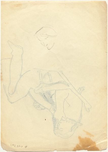 Curator: Welcome. Here we have "Drei balancierende Figuren (Three Figures Balancing)" rendered in pencil. It’s a work by Max Beckmann. Editor: Balancing figures... but everything feels so precarious, doesn't it? The sketch lines are so light, almost floating, yet they convey a weightiness, a struggle to remain upright. Curator: Precisely. Beckmann created this during a period of immense social and political upheaval in Germany. The Weimar Republic was faltering, and his work from this time often grapples with themes of instability. Editor: It feels like a glimpse into his subconscious. Quick, raw. Like catching a fleeting thought about the state of the world, the way we balance on the edge of disaster. It’s melancholic and urgent at once. Curator: Note how the figures aren't precisely defined, and that is classic of Expressionism. It favors emotional impact over representational accuracy. The sparseness of the sketch intensifies that emotional rawness. Editor: I see the geometry, that hard triangle cutting through the bodies. Is that meant to hold the figures together, or cleave them apart? Curator: A brilliant question. The geometry serves both functions, containing and dividing. Society and its conventions exert forces on individuals, creating structures, while also tearing apart natural forms of solidarity. Editor: It makes you wonder what each of us are balancing, doesn’t it? Curator: In these uncertain times, quite so. I wonder what other meanings future observers might extract given a changed landscape of thought. Thank you for adding that intimate layer to the dialogue. Editor: Thanks, it's hard not to wonder when gazing at his creation! It reminds me we're all just figuring out our own strange geometry.
