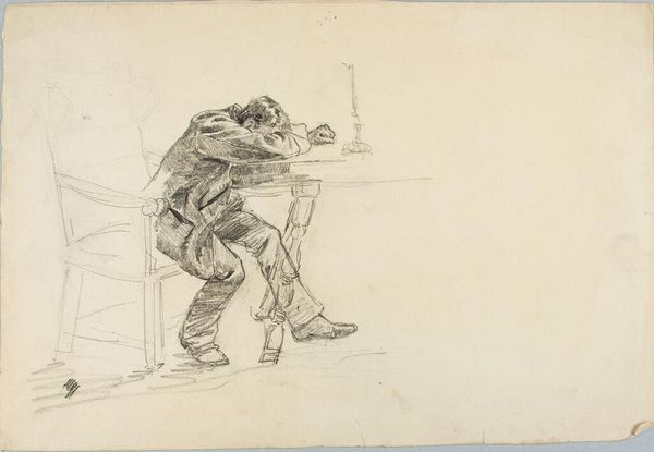 Curator: Honore Daumier's ink drawing, "Boy Carrying Another Boy on His Back," captures a poignant, almost universal image. What's your first reaction? Editor: My immediate thought is that it evokes resilience and the burdens children sometimes bear. Curator: Absolutely. Daumier had such an acute eye for social realities. The older boy, shoulders slumped, becomes a tiny Atlas. The sketchiness adds to the feeling of immediacy, doesn't it? Editor: It does. It also speaks to the socio-economic conditions that force children into these roles, blurring childhood innocence. It's a commentary on inequality, really. Curator: Yes, and in a way, it's a timeless snapshot. It leaves me pondering the cyclical nature of such responsibilities and how Daumier managed to distill it down to a single, simple scene. Editor: Exactly. Daumier challenges us to confront uncomfortable truths, cloaked in seeming simplicity.