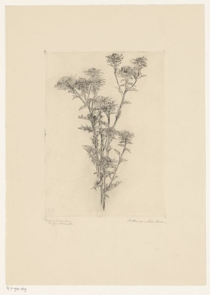 Anton Weiss created "Flowers with Thorns" in 1847, using graphite and possibly some ink on paper. This detailed botanical study reflects the 19th-century fascination with natural sciences, but let's consider the craft involved. Look closely at the tonal gradations achieved through layering graphite, a medium that demands patience and control. The very act of drawing, building up tone through countless strokes, speaks to the dedication required to capture nature's detail. Weiss's choice of medium wasn't just about aesthetics; graphite was relatively inexpensive and readily available, aligning with the rise of commercial printmaking and wider access to art. While seemingly a straightforward depiction, this work touches upon the era's shifting dynamics of art, science, and accessibility. By valuing the process and material, we see beyond the image, recognizing "Flowers with Thorns" as a product of its time, shaped by both artistic skill and social context.