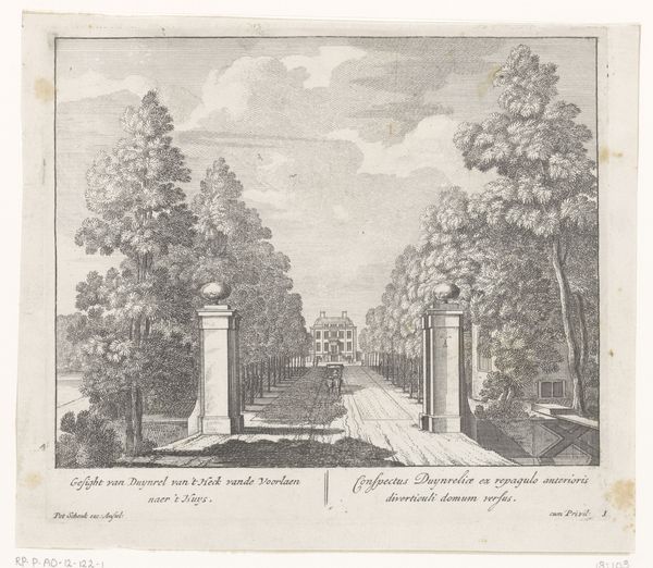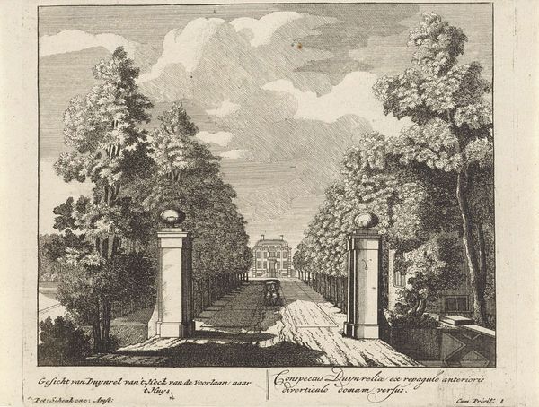 This is an engraving of the gate at Duinrell, created by an anonymous artist. Gates, like the Roman Arch, have always been more than mere entrances. They symbolize transitions, thresholds between worlds. Consider, for instance, the Ishtar Gate of ancient Babylon, adorned with beasts and gods, a portal to the sacred city. This engraving echos such ideas, albeit in a more secular tone. The meticulously aligned trees create a visual corridor that draws the eye and mind. It is a manifestation of humanity's yearning for order and control over nature. The gate, as a motif, has reappeared throughout history, shifting from a symbol of defense to one of welcome, from the boundary between the profane and the sacred to the divide between public and private. Our collective memory imbues these symbols with a resonance that goes beyond their immediate function.