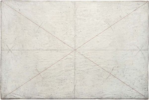 Curator: At first glance, I find the delicate tracery of graphite lines composing Edward Steichen's "Study for 'The Radio Gull'" quite compelling. Created around 1960, it seems like a geometric exploration on paper. Editor: Yes, the meticulous grid overlaid with dynamic diagonals creates an interesting tension. My immediate sense is of constraint, followed by an explosive potential. It feels like a visual representation of controlled chaos. Curator: Indeed. Knowing Steichen, with his early Photo-Secessionist roots and his later embrace of modernism, this drawing speaks to the push and pull between capturing observed reality and the lure of pure abstraction. Those perfectly ruled lines create a rigid foundation that his diagonal additions seem to defy, even fracture. Editor: The “Radio Gull” title throws another layer onto this, doesn't it? Considering the socio-political context of 1960—the height of the Cold War—could we see the grid as a symbol of state control and surveillance, the "radio" implying constant monitoring, while the gull signifies a desire for freedom? The angles representing trajectories of dissent, perhaps? Curator: That's a potent reading. And "gull" implies trickery, deception. There’s something else—gulls as archetypal symbols are often tied to scavenging and survival, attributes not often celebrated in American culture. Are we seeing that hinted here, maybe resistance and existing apart from, even taking from, such imposed restrictions? Editor: It also strikes me that the modernist abstraction mirrors mid-century societal shifts in the wake of wartime devastation, moving away from figurative art and representational clarity into a more fractured mode of reflecting human existence. It resists easy readings, demanding viewer interpretation, much like the anxieties of the Atomic Age. Curator: The very deliberate mark-making speaks to a careful process of planning, a constant calibration between rigid systems and free-flowing energy, mirroring the turbulent times you speak of, perhaps a cultural yearning for simpler, purer symbolic forms amidst growing distrust and propaganda. Editor: It becomes far more compelling seeing it as something much larger than simply preliminary sketches. Understanding abstraction to be a conscious commentary opens a new window onto Steichen. Curator: Absolutely, layers of symbolic potential transform seemingly technical preparation for an eventual painting into commentary far larger than just an early plan for an artwork. It shows us art reflecting life.