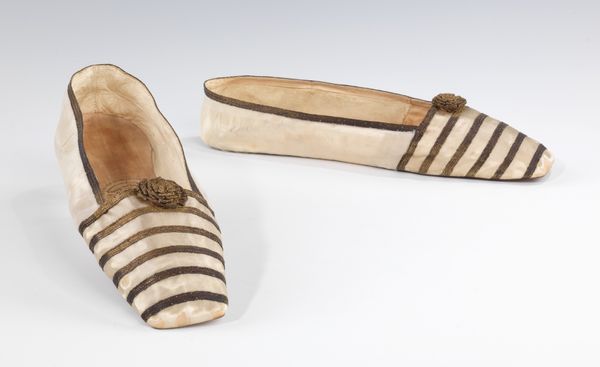 These slippers by Phipps's offer a glimpse into the intimate lives of the past, whispering stories of gender, class, and identity. Imagine the world in which these slippers were worn - a world of rigid social structures, where clothing was a powerful signifier of status and gender. These delicate, silken slippers speak to the leisure and privilege afforded to certain women. What did it mean to be a woman who could afford such delicate footwear, impractical for any labor beyond the domestic sphere? The soft material and simple design contrast with the restrictive corsets and elaborate gowns of the time, suggesting a moment of quiet reprieve. Consider the weight of societal expectations these women carried, and the silent language of their clothing. These slippers, in their quiet elegance, invite us to reflect on the complexities of women's lives throughout history, their confined spaces, and the subtle ways they navigated their identities within a patriarchal world.