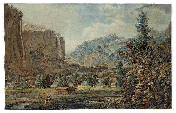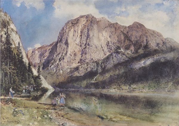 This watercolour, ‘Two Men by Pond below Alps,’ presents a scene dominated by the sublime power of the mountains. Mountains have always been powerful symbols, representing both the unyielding strength of nature and the spiritual quest for higher understanding. Think of Mount Olympus, the home of the Greek gods, or the mountains in Chinese ink wash paintings, where hermits seek enlightenment. The mountains here echo a similar sentiment, evoking feelings of awe and introspection. Even the lone tree shares this resonance. Across cultures, a tree may represent the tree of knowledge or the axis mundi connecting different realms. The men by the pond seem dwarfed by the surrounding landscape, caught in a moment of contemplation before nature’s grandeur, a sentiment that resonates through centuries of art, continually reminding us of our place within the vast cosmos. The emotional depth of this landscape lies in its ability to tap into our collective memory, stirring subconscious feelings of reverence and humility. These symbols have evolved, yet they continue to engage viewers on a profound, almost primal level.