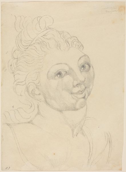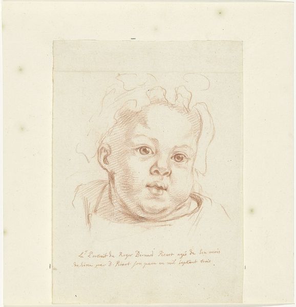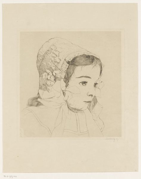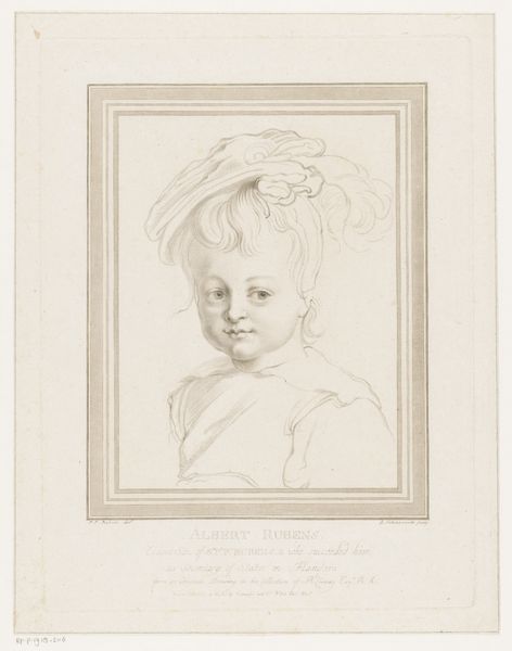 Auguste Danse created this portrait of Johannes-Baptist de Vos using graphite. The innocence captured in this child’s gaze is immediately striking, but it's important to consider how childhood itself has been historically represented. Often, children in portraiture are seen as symbols of purity or dynastic legacy, their individual identities overshadowed by societal expectations. Here, the soft rendering of the child's features invites a more intimate reading. Consider the elaborate ruffled collar and head covering which position him within a certain social class. Does the softness of the medium and the child's expression offer a counterpoint to the formality of his attire? How might the artist be playing with or reinforcing ideas about childhood, class, and identity in this work? The drawing acts as a poignant reminder of the personal stories often embedded within formal portraiture, inviting us to look beyond the surface and consider the individual humanity of the sitter.