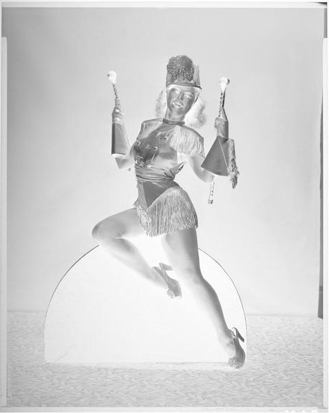 Curator: Here we have an Untitled work by Lucian and Mary Brown at the Harvard Art Museums, showing a man doing a headstand next to a Buddha statue. Editor: Whoa, that's a playful image! It’s got this sort of irreverent, mischievous vibe. Are they poking fun or finding some weird harmony? Curator: Well, consider the setting. It seems like a domestic interior, perhaps their home, judging by the couch and drapes. The juxtaposition of the sacred and the mundane is quite intentional. Editor: Right, like enlightenment hitting you smack-dab in your living room! And the casualness of the headstand, it almost feels like the man is trying to match the Buddha's stillness, but upside down. Curator: Precisely! The materials and setting invite us to explore the artist's hand in crafting the image. The labor is shown in the pose and the placement of domestic and spiritual items. Editor: I see it as a reminder to find balance in the chaos, or maybe just a funny snapshot of life’s absurdities. Definitely makes you think, or at least smile. Curator: It reveals the cultural context and challenges boundaries, showing what gets made when these two worlds intersect. Editor: It's a lovely piece, though it leaves me still contemplating what to think!