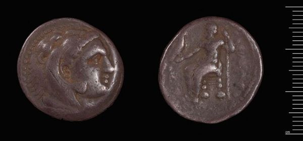 Curator: Here we have a Drachm of Philip III of Macedonia, currently held at the Harvard Art Museums. Editor: It looks like a humble artifact, but the wear and tear hint at the many hands it must have passed through. What stories could it tell? Curator: Its materiality speaks volumes. Silver was the backbone of Macedonian trade and military finance, fueling Philip's campaigns. This coin was more than currency; it was propaganda. Editor: Absolutely. The iconography, especially the depiction of Heracles, links Philip to legendary strength and divine favor. That resonates deeply with cultural memory. Curator: Precisely. The coin's design also reflects the labor involved, from mining the silver to striking the image, all contributing to the machine of state. Editor: It’s amazing how a single, small object can unlock a window into ancient economics, mythologies, and power structures. Curator: Indeed, it’s a testament to the enduring dialogue between materials and meaning.