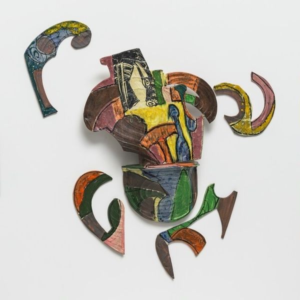 Curator: Here we have "MATERIAL II" by Yinka Shonibare, created in 2018. It's a vibrant, mixed-media sculpture. What's your first reaction? Editor: It's wonderfully unsettling! It looks like a freeze-frame of a flag caught mid-flutter, or perhaps some other draped textile defying gravity. The colors practically vibrate! Curator: Exactly! That sense of suspended motion is key. Shonibare often uses Dutch wax fabric, though the patterns themselves were actually inspired by Indonesian batiks mass-produced by the British, eventually becoming popular in West Africa. Think about the layering of cultures and commodification there. Editor: The choice of "African" fabric made in Europe speaks volumes. I can't help but think of global trade routes and the tangled webs of colonialism. Beyond the finished object, I am very interested in the means through which these works were crafted: I can imagine a globalized network of suppliers involved in fabricating this seemingly simple sculpture. Curator: You're right, it's an art of skillful construction – each form impeccably crafted. It dances between abstraction and something recognizable. Editor: The patterns almost become a language in themselves. They certainly disrupt any sense of fixed identity, especially regarding notions of "authenticity." I also find myself focusing on the support system for these objects: the material choices, the types of tools available. In these situations I find these concerns much more interesting than authorial intent. Curator: I agree the tensions and the dialogues are fascinating. Does it make you think of the possibilities of joy and chaos, like fabric caught in a strong wind? Editor: Definitely chaotic – maybe even rebellious, refusing to be neatly categorized or pinned down. Though thinking about it, what does "material rebellion" really mean when everything is eventually bound to labor and capital? Curator: Ultimately it is something the viewer has to reckon with on their own terms – its dynamism and color are an invitation to delve into something much deeper and stranger. Editor: Precisely. "MATERIAL II" offers us a vibrant lens to reconsider not only what we see, but how and from where.