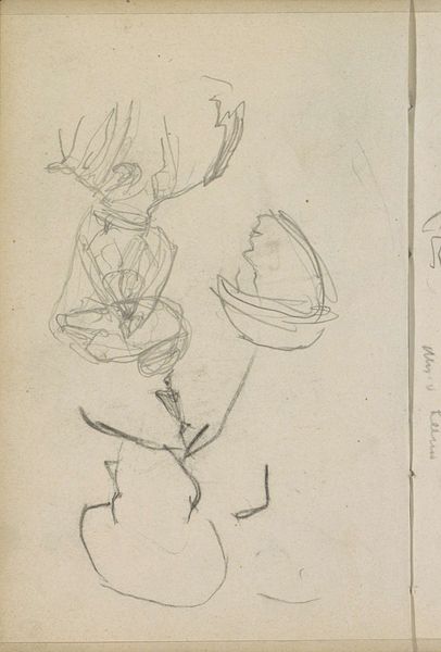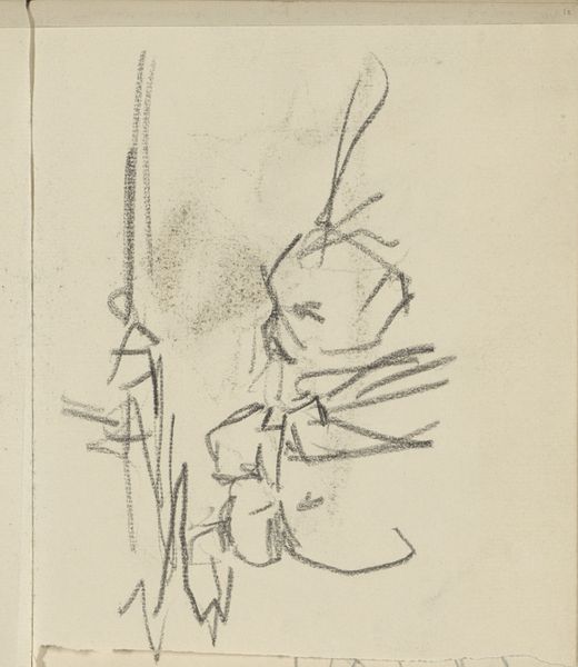 Curator: This sketch, held in the Rijksmuseum, is called "Twee staande vrouwen," or "Two Standing Women," by Isaac Israels. It's rendered in pencil and falls somewhere between 1875 and 1934. Editor: My initial reaction is… ambiguous. The figures are barely there, just the ghost of a suggestion, a collection of lines on a pale field. It feels unfinished, immediate. Curator: Precisely. Israels, aligned with Impressionism, captured fleeting moments. It's about the impression of form rather than meticulous detail, a break from academic tradition. One must think about the salon system and its rigid expectations when considering this move toward a more liberated portrayal of figures. Editor: Right, the sketch challenges those formal expectations. The figures aren't individualized; their identity almost seems beside the point. The strokes emphasize the universal posture, suggesting women's presence reduced to a form, or shape, existing on paper. I find this really fascinating if one applies the language of feminist theory. Curator: I see your point. Consider this sketch's broader social context. During Israels' time, women's roles were under intense renegotiation. The sketch, even unintentionally, might mirror that era's unsettled ideas about gender roles and representation. Israels engaged frequently with the representation of women within a commercial framework as he often sketched working women, fashion models, and so on. Editor: It is easy to read this as an objective record; however, its value lies more profoundly in its subjective quality, making the artwork a charged site, filled with implications regarding spectatorship and female representation. It is more concerned with form than fact. I'm particularly drawn to that tension— the implied story versus the actual one we see. Curator: Well, art often invites this. The ambiguity we both notice, inherent in the image, permits such dialogues across time and various schools of thought. Editor: It definitely does. These brief suggestive sketches become points of departure. I think Israels achieves this elusive quality of an active space that encourages one to enter in and continue a thought.