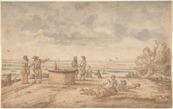 Hendrik Meijer made this watercolor titled 'June', sometime in the late 18th century. Meijer lived and worked during a period of significant social and economic change in the Netherlands, as traditional rural ways of life were steadily being challenged. Here, the pastoral scene offers an intimate glimpse into 18th-century rural life. We see shepherds tending to their flock, with figures resting, one appearing idle, amidst humble dwellings. The clothing and activities suggest a life close to the land, but also hint at the socio-economic hierarchies of the time. It’s worth noting the quietness and lack of idealization in Meijer's depiction. Instead of romanticizing rural life, he presents a more grounded view of the day-to-day existence of these figures. This challenges traditional representations of pastoral life, inviting us to consider the realities and labor involved. It makes you wonder about their stories, their connection to the land, and their place in a changing world.