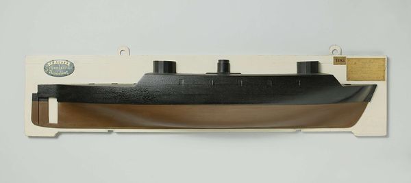 Editor: Here we have the "Half Model of a Screw Steamer" crafted in 1885 by the Koninklijke Fabriek voor Stoom- en andere Werktuigen, blending metal and wood. I'm struck by how this utilitarian object is elevated almost to a commemorative plaque. What’s your read on this, viewed through a historical lens? Curator: This isn't just a half model; it’s a statement of industrial power presented as a piece of public art. Consider the socio-economic context of the late 19th century. Factories like the Koninklijke Fabriek weren't simply producing goods; they were emblems of national progress and technological prowess. How might displaying this model have shaped public perceptions of the factory and its role in society? Editor: It feels almost like propaganda. By displaying a "high art" version of what they produced, the factory's message feels like it was to position itself as a driver of modernization, culture, and art—more than just industry. It served multiple purposes by reinforcing its status within both the industrial and public spheres. Curator: Exactly. And note the material choices – wood and metal. They symbolize both the traditional craft of shipbuilding and the burgeoning dominance of industrial technology. Think about the audience for this piece. Was it intended for engineers, investors, or perhaps even potential workers? And how might the message have resonated differently depending on the viewer? Editor: It seems aimed to impress various groups, boosting prestige. It also normalizes industrial advancement. Are we looking at this kind of piece differently now compared to 1885? Curator: Absolutely. Today, we might analyze its environmental impact or the labor practices of the factory. We also examine how this seemingly neutral object promoted a particular ideology. Does that shift change your own perspective? Editor: Definitely. Seeing it through that lens reveals complexities. It's not just a ship model; it’s a carefully constructed narrative about progress. Curator: Precisely. This piece allows us to examine the intricate relationships between industry, art, and the shaping of public opinion.