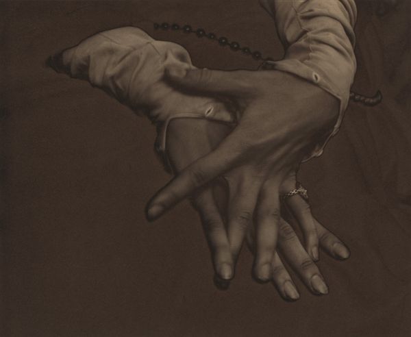 Alfred Stieglitz captured "Georgia O'Keeffe—Hands" in a photograph, its date unspecified. The composition is a study in contrasts, where light delicately models the hands against a background of deep shadow. The hands themselves are not merely representational, but function as abstract forms. See how Stieglitz uses the interplay of light and shadow to accentuate their contours? The tactile quality of the skin is almost palpable. The arrangement of the hands introduces a dynamic tension. There is a sense of intimacy and connection, but it also leaves the relationship between the hands ambiguous. Are they caressing, or is there an underlying tension? The photograph destabilizes the traditional portrait, challenging fixed meanings. The cropping isolates a part of the body, inviting contemplation on its aesthetic form. As such, the artwork embodies an ongoing play between representation and abstraction, challenging viewers to interpret its multiple layers of meaning.