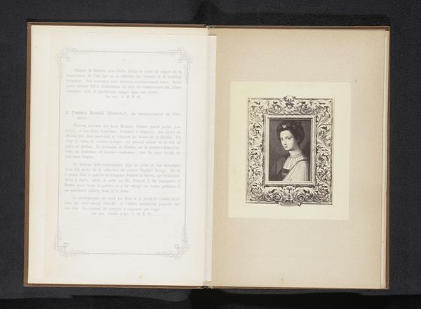 Curator: This fascinating photographic reproduction presents a portrait of Cardinal Pierre de Luxembourg. It’s likely sourced from before 1880, judging from its style and printing process. Editor: It feels very reverential, doesn't it? There’s an undeniable stillness in the image. It almost looks like he’s floating amidst the textured background. What symbolic weight would a figure like him carry? Curator: Absolutely. Think about the context. As a Cardinal, Pierre de Luxembourg was a very powerful figure. Now, a reproduction like this helps maintain that authority, reinforcing specific social structures and ecclesiastical institutions. It’s about preserving a particular memory of power, I think. Editor: The headdress is a compelling symbol, as well as his clothing. But how much of his perceived persona relies on symbolic adornments over inherent spiritual presence? Does the attire create the aura, or does it amplify something already there? Curator: Good point! These images were consciously constructed. So many portraits, even when depicting figures with supposedly spiritual connections, became highly politicized—art serving as propaganda in some ways, subtly reinforcing hierarchy. Editor: Yet, the presence of a coat of arms creates a lineage through symbolic representation. Family crests become vital links to identity that give meaning and permanence to status, beyond merely religious or political influence. It’s fascinating how families tried to visually secure themselves in cultural memory. Curator: I agree completely! And the photographic element makes it so widely accessible. So, through photography, that message of established authority goes to new segments of the public. The image functions almost like a proto-mass media tool. Editor: Seeing the symbolism through the lens of history helps reanimate an image that might otherwise be a simple portrait. The weight of representation becomes much clearer. Curator: It definitely adds layers of interpretation! I think this reproduction underscores how imagery functions within larger networks of power, belief, and social practice. Editor: Ultimately, examining these visual cues allows us to decipher meaning and unpack cultural significance encoded in an individual and their broader community.