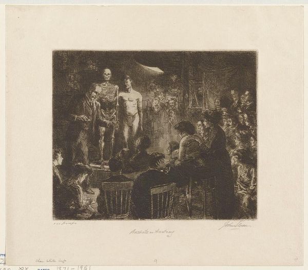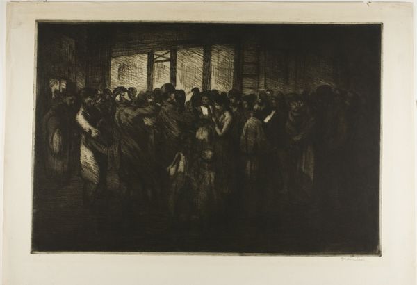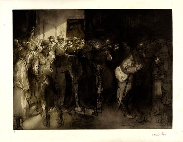 George Bellows made this dramatic lithograph, "Preliminaries to the Big Bout," during the early 20th century. The image pulsates with raw energy, capturing the gritty atmosphere of a boxing match. Bellows, part of the Ashcan School, sought to portray the unvarnished realities of urban life. Here, he depicts not just the physical contest but the social theatre surrounding it. The composition divides the space between the brutal, almost balletic, struggle of the fighters in the ring and the audience, a mix of shadowed figures distinguished by class and gender. The stark contrast between light and dark accentuates the voyeuristic aspect of the scene. The women are shown in the audience: are they complicit or repulsed? Bellows captures a moment rife with tension, reflecting the complex intersections of spectacle, masculinity, and social stratification. The artist said he tried to "cut loose from the influence of politeness in pictures". This image invites us to confront uncomfortable truths about power, violence, and the ways in which we participate in, or are complicit, in the spectacle of others' struggles.