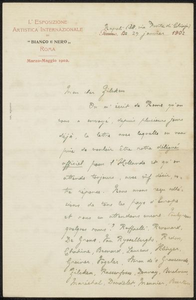 Editor: Here we have “Brief aan Henriette Wilhelmina van Baak,” possibly from 1939, by Dagmar Frandsen. It’s ink and pen on paper – essentially, a handwritten letter. There’s something very personal and fragile about seeing handwriting, especially one that’s this delicate. What kind of story does the lettering tell you? Curator: This isn't just handwriting; it's a visual encoding of an entire relationship. The *style* of the hand itself tells a story. Look at the flourishes, the almost architectural quality of some strokes—they become symbols of connection, or perhaps even longing, across time and distance. And, crucially, the medium—ink on paper—speaks volumes, invoking a sense of permanence that digital communication lacks. Editor: That's an interesting point. The deliberate act of writing, as opposed to typing… Curator: Exactly. Consider calligraphy—its cultural significance isn’t just in transmitting information but also about artistic expression. This hand-drawn typeface—almost a ‘hand-drawn font,’ as one of the tags suggests—becomes a reflection of the writer’s personality, emotional state, their very *being.* It reflects a certain period of design. Think of the Bauhaus and other explorations of simplified geometry, which feel echoed in that unique symbol at the top left. Do you see how it feels part logo, part talisman? Editor: I see what you mean. It's like the whole letter, from the ink to the symbols, works as an intimate message. Curator: Precisely! It bridges a cultural memory. Even if we can’t decipher the literal meaning without a translation, the image itself becomes an artifact loaded with psychological and cultural weight. Each curve and stroke is a conscious—or unconscious—expression. We look at the emotional archaeology. Editor: I’ve never considered the idea that just the letter style carries so much meaning. That changes everything about how I perceive handwritten documents.
