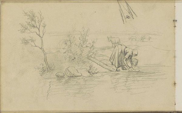 Johannes Tavenraat made this pencil drawing of cows in a meadow and a lane near the shooting range in Crooswijk. The texture of the laid paper is integral to the artwork, as the pencil catches on the tiny ridges in the page. The softness of the graphite allows Tavenraat to create subtle tonal variations, bringing the rural scene to life. He depicts the working landscape, in which animals and people coexist, as well as documenting a shooting range, which would have been a leisure spot for the middle classes. Drawings like this were vital to the development of 19th-century art. They served as studies for larger paintings, allowing artists to explore compositions and refine their technique. But they were also an important means of capturing everyday life in a rapidly changing world. Tavenraat's drawing embodies a moment in time, providing a glimpse into the social and economic context of the Dutch countryside. It reminds us of the importance of craft and material in understanding an artwork's cultural significance.