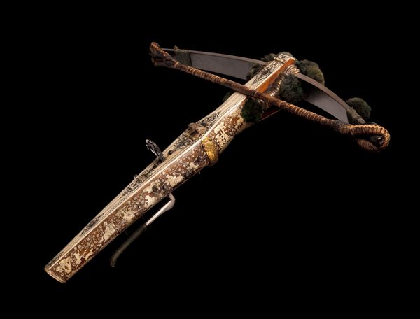 Dimensions: L. of crossbow, 28 13/16 in. (73.2 cm); W. of crossbow, 24 15/16 in. (63.3 cm); Wt. of crossbow, 10 lb. 7 oz. (4,817 g); L. of cranequin (without crank), 14 1/4 in. (36.2 cm); L. of crank, 10 3/4 in. (27.3 cm)