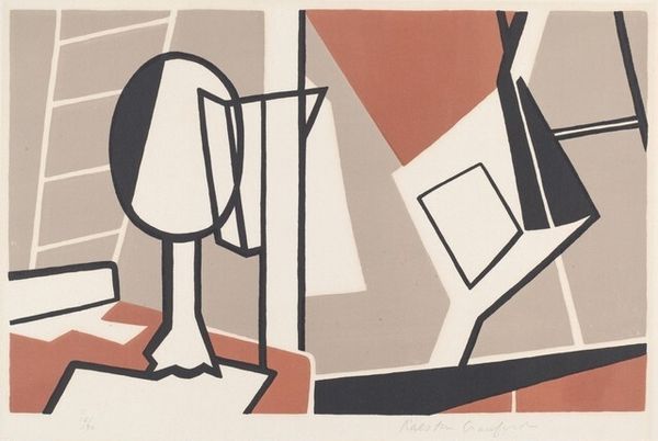 Editor: This is Roy Lichtenstein's "Still Life with Dossier," painted in 1976 using acrylic and paper. The stark black and white, with that characteristic Lichtenstein pop-art style, feels almost bureaucratic, like paperwork taking over a domestic space. How do you interpret this work? Curator: I see a critique of the information age bubbling beneath the surface of that cool Pop veneer. Lichtenstein, by elevating the mundane – the office dossier – to the level of fine art, implicates the viewer in a system where information, often classified and controlled, dictates so much of our lives. Consider the chair. What does its emptiness signify within this context? Editor: Hmm, absence? Or maybe just that the 'dossier' is the central figure here, eclipsing human presence? The diagonal lines create a sense of unease. Curator: Precisely. These elements, seemingly simple formal devices, actively construct the viewing experience and draw out the painting’s complex subject position. Lichtenstein forces us to contemplate how the presentation of knowledge impacts us politically and psychologically, does it not? Editor: So, it’s not just Pop Art celebrating consumerism; it’s questioning power structures embedded within seemingly neutral objects. Curator: Exactly! We can read "Still Life with Dossier" as a commentary on institutional power – where documentation becomes a tool to surveil, control, and classify. It anticipates the digital age we now inhabit, where data reigns supreme and privacy erodes. It uses irony to start an important conversation about social issues. Editor: I always saw Lichtenstein as surface, but now I'm thinking about the layers beneath! Curator: Which is what makes revisiting art so thrilling – the context changes, we change, and the conversation evolves.