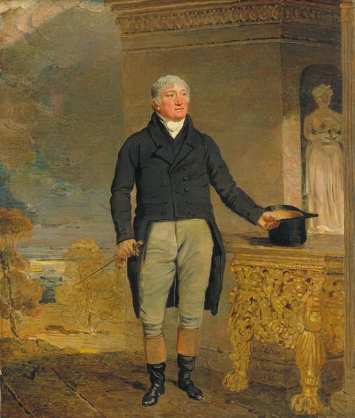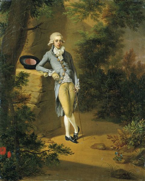 Thomas Gainsborough painted this portrait of Clayton Jones using oil on canvas. The artist has used many layers of thinned paint, applied in short strokes to create a luminous and textured effect. Gainsborough was renowned for his ability to capture the textures of fabrics, and here we can see the sheen of Jones’ silk waistcoat, achieved by the artist's layering of colors. The background, loosely rendered, contrasts with the more detailed depiction of the sitter's attire. Consider the social context: portraits like this were luxury goods, reflecting the sitter's wealth and status. Each layer of paint represents skilled labor and the materials of production. Gainsborough's work reflects a society increasingly structured around consumption and display, where art served to reinforce social hierarchies. By attending to the materials, techniques, and social context of this painting, we can understand its deeper cultural meaning and appreciate the artist’s skilled craftsmanship.