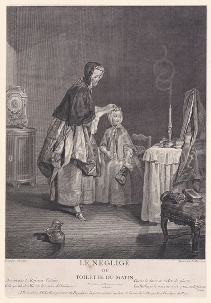 Jean-Joseph Baléchou created this engraving, "L'Enfance," which translates to "Childhood," in the 18th century, offering us a glimpse into the world of privileged youth. It encapsulates the paradox of childhood within the rigid class structures of the era. At first glance, the scene suggests domestic tranquility: well-dressed children at their lessons. But look closer, and we see a narrative of confinement and discipline. The engraving subtly critiques the social expectations placed on young members of the aristocracy, particularly the emphasis on academic achievement and moral rectitude. The birdcage in the background serves as a metaphor for the gilded cage of upper-class childhood, where material comforts come at the cost of freedom and self-discovery. Baléchou’s work invites us to consider how social class shapes individual experience and the complex negotiations between personal desire and social expectation.