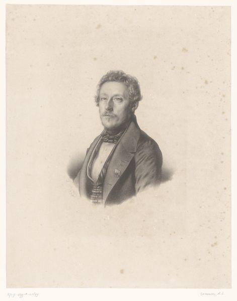 Peter Gemzøe created this portrait of Andreas Simmelhag using an engraving technique. The structure of the work is defined by the interplay of light and shadow, creating a palpable sense of depth and volume. Notice how the artist skillfully uses hatching and cross-hatching to model Simmelhag's features. Gemzøe's method is less about capturing a likeness and more about the structural forms that shape Simmelhag's presence. The formal composition, with its meticulous detail and balanced asymmetry, embodies a kind of visual order. This approach to portraiture aligns with broader artistic inquiries into how identity and representation are constructed through form. Consider the stark contrast between the finely rendered face and the smoother expanses of the coat, which suggests a hierarchy of focus that directs the viewer's attention. This emphasis reflects a deeper engagement with the semiotics of portraiture, where every visual element serves as a sign contributing to a cohesive narrative. In this context, the artwork acts as a site where cultural values and artistic expression converge, inviting continuous reinterpretation.