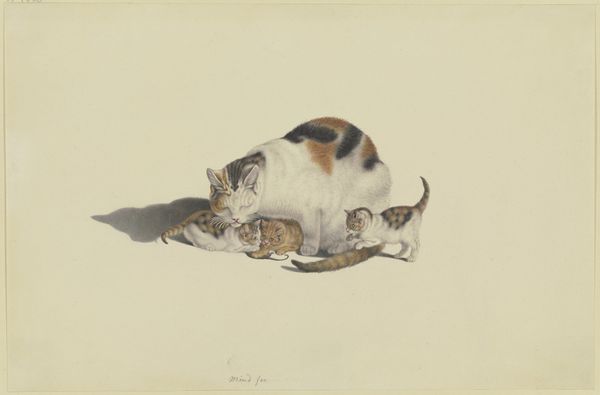 Editor: Here we have "Kat," a drawing created with ink on paper by Henri Verstijnen, sometime between 1892 and 1940. It's quite simple, but the cat’s pose feels so alive! How would you interpret this work? Curator: It's interesting how Verstijnen captured the cat's energy with just a few strokes of ink. Consider the period. Animal representation, particularly domestic animals, becomes a prominent subject. This resonates with shifts in society, especially in the burgeoning middle class, where pets held a symbolic place within the household. What might a seemingly simple drawing of a cat tell us about these emerging social structures? Editor: So, it's not *just* a drawing of a cat? Curator: Exactly. Realism in art doesn't just mirror reality; it reflects the values and perspectives of its time. This particular image, with its focus on a domestic animal, speaks volumes about how human-animal relationships were being renegotiated and redefined within the context of modernity. Do you see how the cat is both wild and tame, blending natural instincts with domestic life? Editor: That makes a lot of sense. It's like a representation of how we, too, are constantly balancing our own 'wild' and 'tame' natures. Curator: Precisely! It serves as a subtle reminder that these simple representations can reflect complex societal and personal dynamics. What do you make of the quick, almost sketchy linework Verstijnen employs? Editor: It gives it a sense of immediacy, like capturing a fleeting moment, a quality perhaps not accidental. The quick execution suggests it’s meant to depict the modern life and evolving relationship with nature within quickly industrializing cities. Curator: I agree. That hasty visual style hints at modernity itself! So, we started with what looked like a cute animal study but actually were able to peel back some layers of gender and class! Editor: Absolutely! Now, I won't just see a cat; I will think about societal reflections on the human condition within the quickly-industrializing 20th century! Thanks.