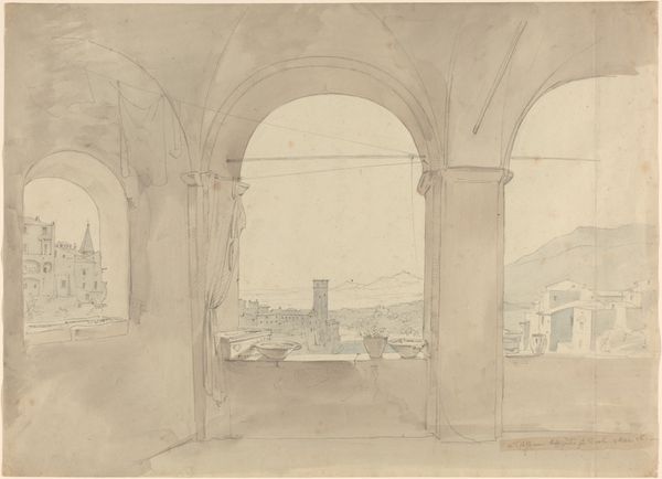 Domenico Fossati created this stage set design with pen, brown ink, and gray wash, presenting a stark and imposing architectural space. The composition is dominated by high vaults and a prominent staircase, rendered with precise lines that converge to create a sense of depth and dramatic perspective. The use of monochromatic tones—ranging from deep grays to light washes—enhances the dungeon-like atmosphere, evoking feelings of confinement and mystery. Note how the arches and vaults curve inward, guiding the viewer's eye and amplifying the scale of the interior, while the stark contrast between light and shadow emphasizes the three-dimensional quality of the setting. Fossati masterfully employs linear perspective, a technique embraced during the Renaissance to create realistic depth on a two-dimensional surface. The strong geometric structure and dramatic lighting not only serve the practical function of a stage design but also reflect broader artistic concerns with space and perception. Through the interplay of line, form, and shadow, Fossati creates a compelling visual experience that is both aesthetically striking and conceptually rich.