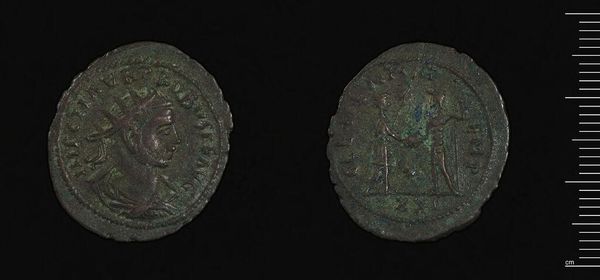 Curator: This coin, a Centenionalis of Constantius II from Aquileia, now residing at the Harvard Art Museums, whispers stories of the Roman Empire. Editor: Worn and earthy, like a piece of the ground itself holding the ghost of an emperor’s profile. Curator: Indeed. Its material composition reveals much about the era's metallurgical practices and the standardization of currency. The coin's weight, at 4.81 grams, speaks to imperial economic policy. Editor: But also, what did it feel like to hold this in your hand centuries ago? What small purchase did it represent? What journey did it undertake? Curator: A fascinating thought. The act of circulation itself, the transference of value and power. Editor: It's a tangible reminder of a vast empire, shrunk into this small, imperfect circle. I am left humbled.