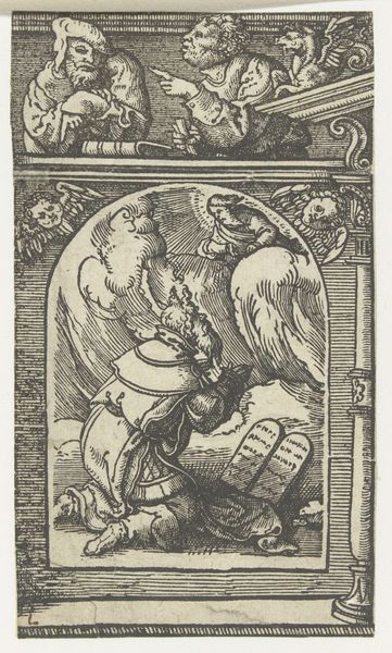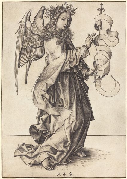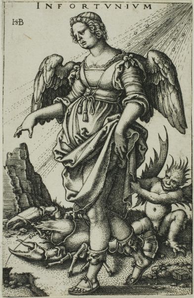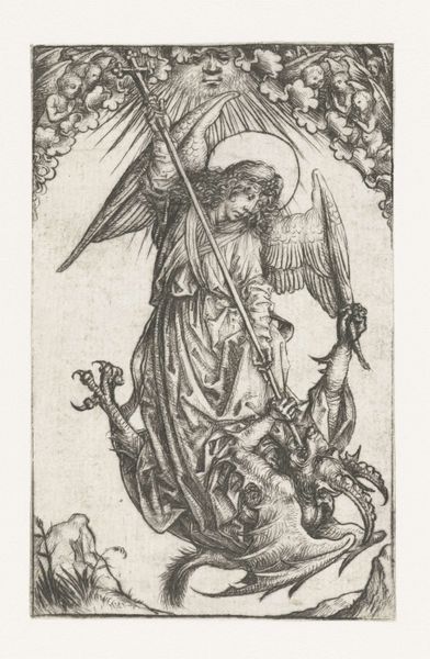 Lucas Cranach the Elder created this engraving of the Archangel Michael sometime in the 16th century. Here, Michael stands as a divine adjudicator, his sword raised, scales in hand, deciding the fate of a soul. The scales, a symbol of justice and divine balance, weigh the soul against demons lurking, eager to drag it to hell. The act of weighing souls has roots in ancient Egyptian beliefs, where Anubis performed a similar task. This motif reappears through medieval and Renaissance art, each time imbued with the cultural anxieties of the era. Notice how Michael's stern gaze and the writhing demons evoke a sense of intense psychological drama. The composition is designed to provoke an emotional response, tapping into our primal fears and hopes concerning morality, judgment, and salvation. This image isn't merely a depiction of a biblical scene, but a mirror reflecting humanity’s timeless preoccupation with morality and destiny, perpetually evolving yet eternally resonant.